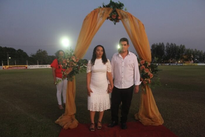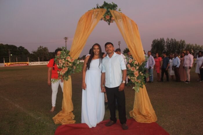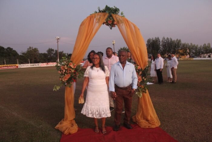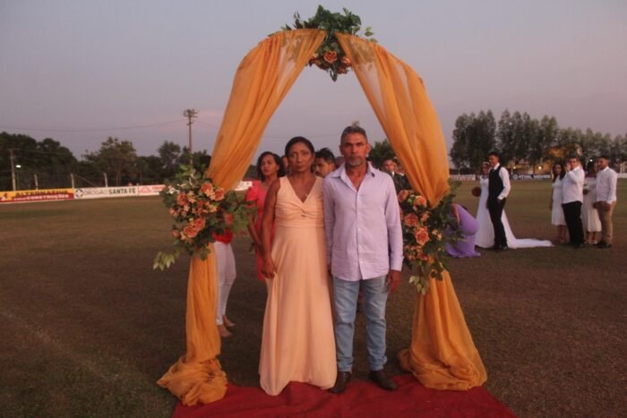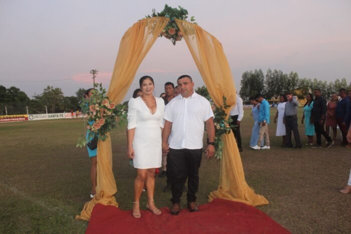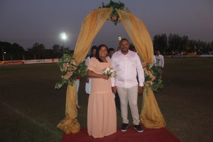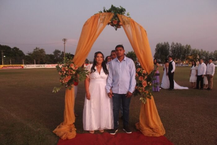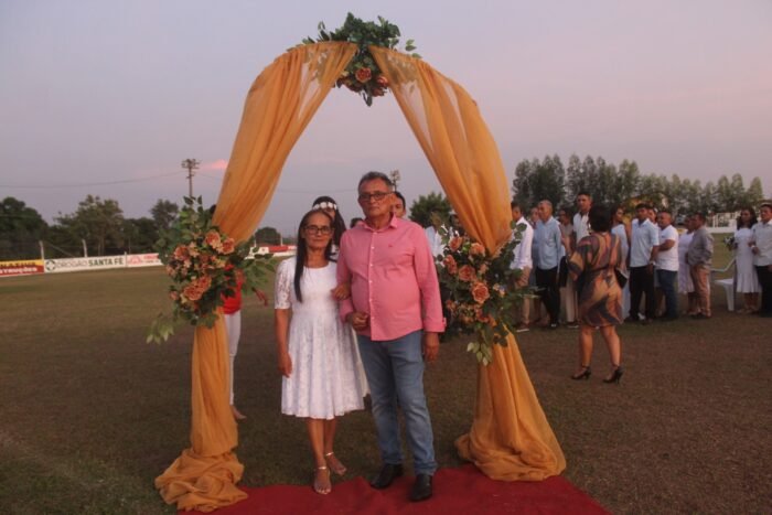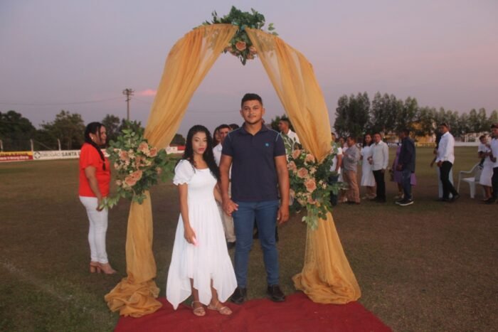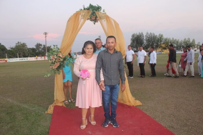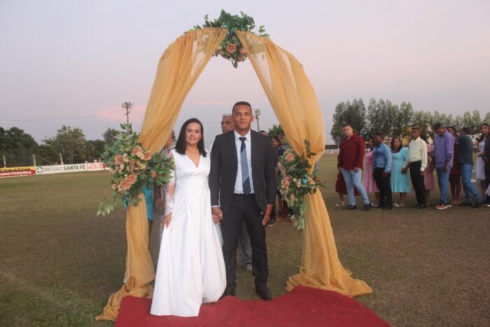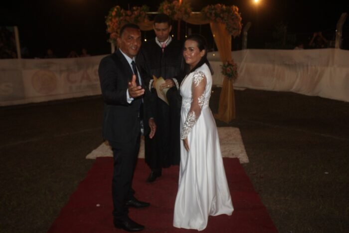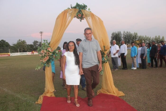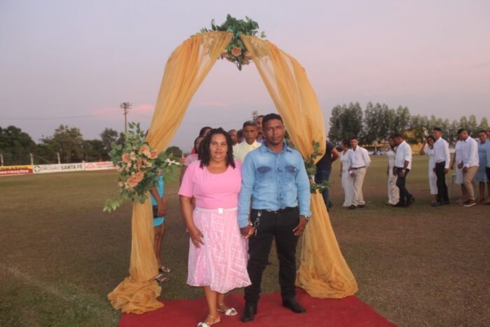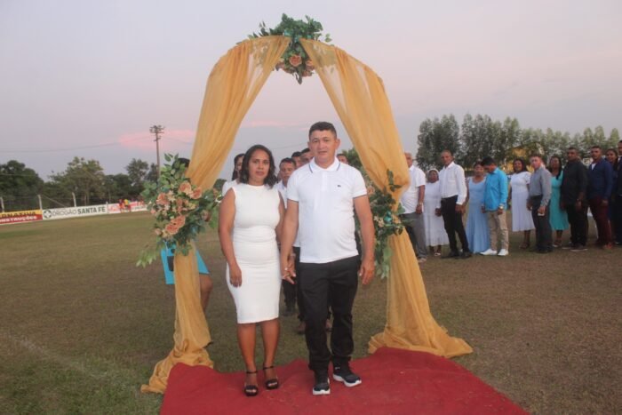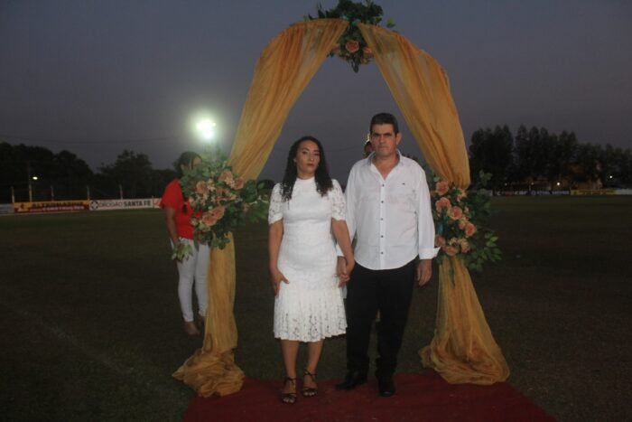 O Estádio Zezão, que geralmente é palco de partidas de futebol e eventos esportivos, foi transformado em um cenário de conto de fadas para os noivos que escolheram participar do casamento comunitário. A Prefeita Cristiane Varão e os vereadores Vania e Rony e secretarios municipais marcaram presença, demonstrando seu apoio à celebração do amor e da união na comunidade.