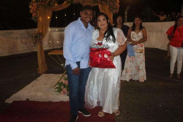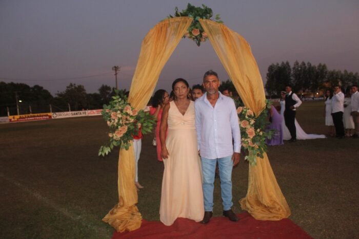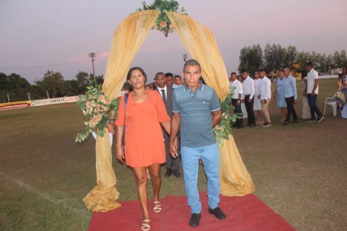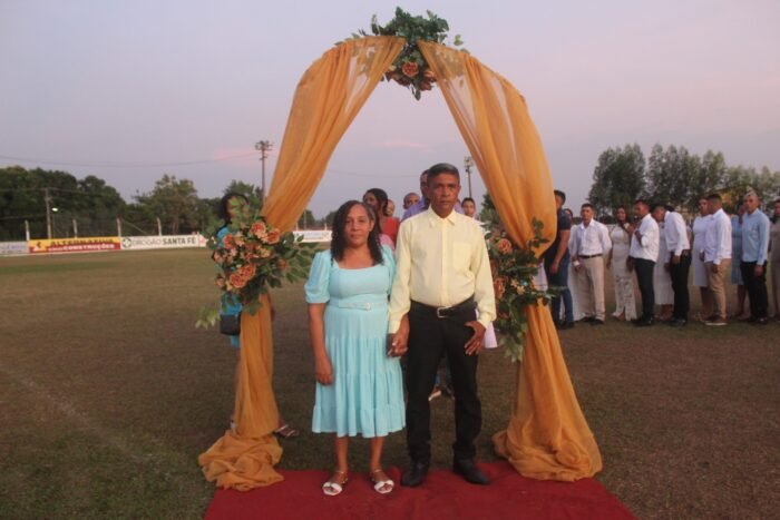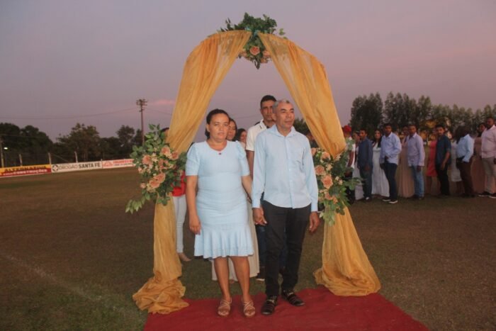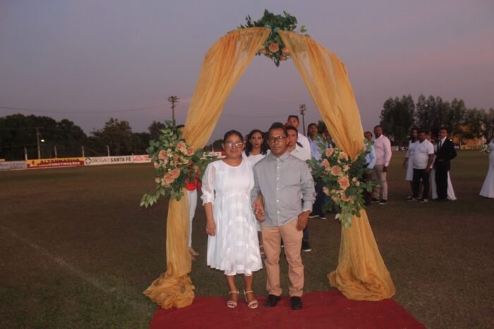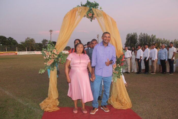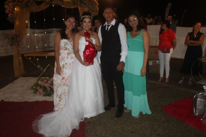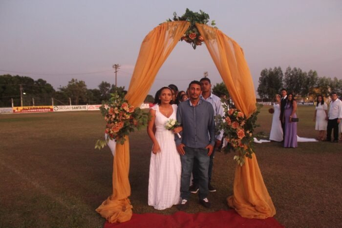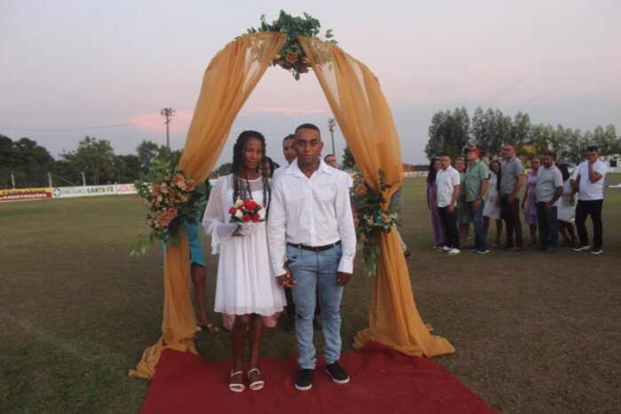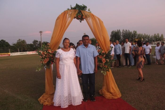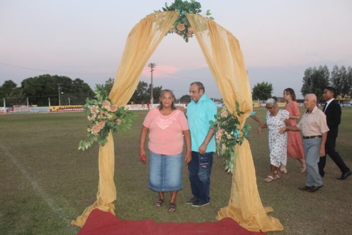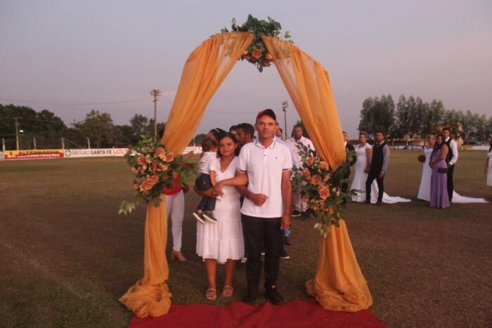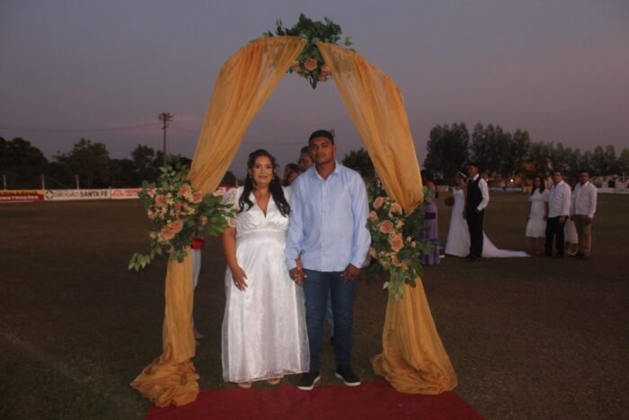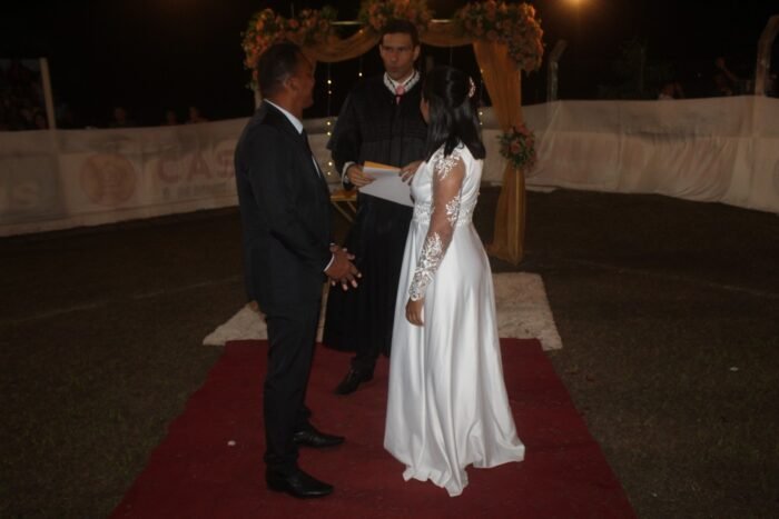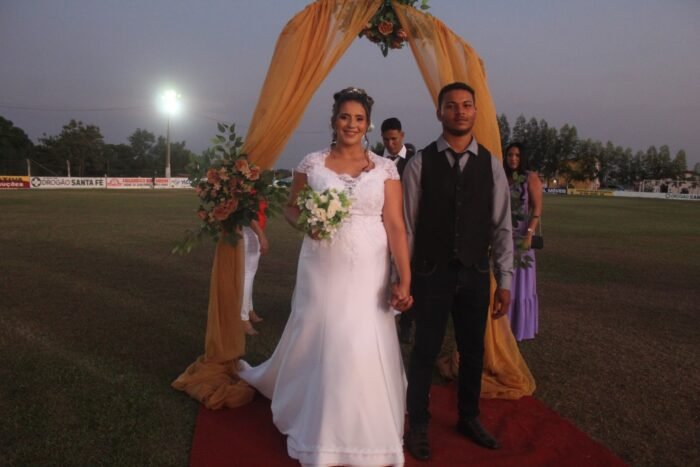 O Estádio Zezão, que geralmente é palco de partidas de futebol e eventos esportivos, foi transformado em um cenário de conto de fadas para os noivos que escolheram participar do casamento comunitário. A Prefeita Cristiane Varão e os vereadores Vania e Rony e secretarios municipais marcaram presença, demonstrando seu apoio à celebração do amor e da união na comunidade.