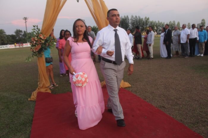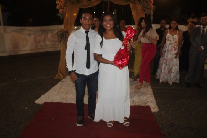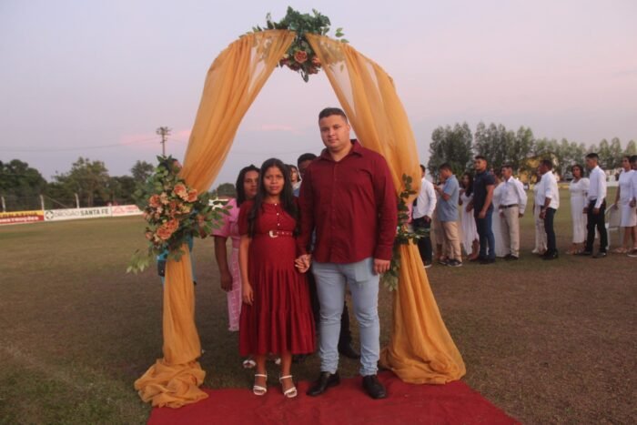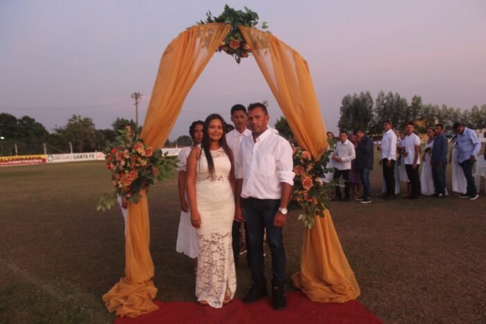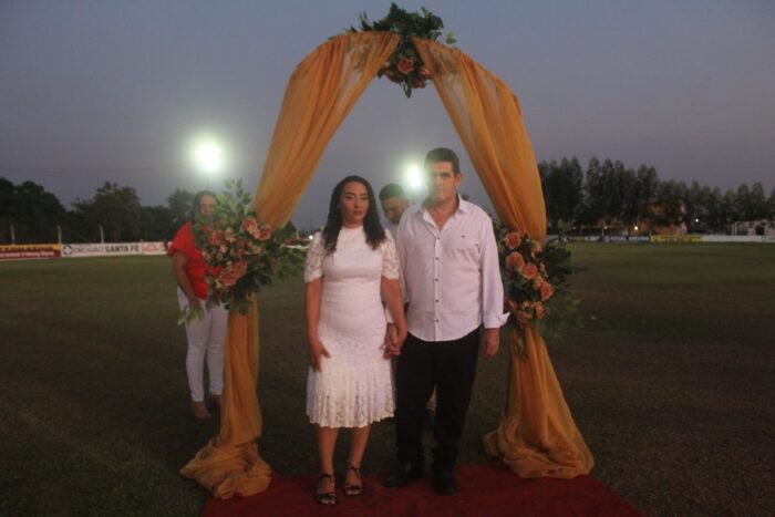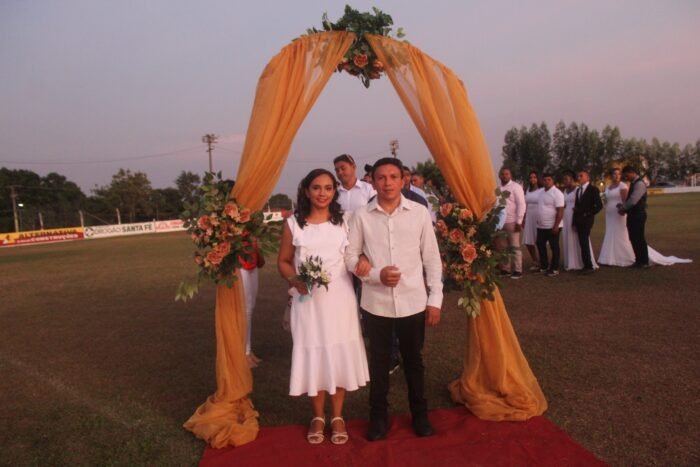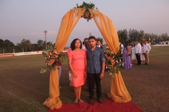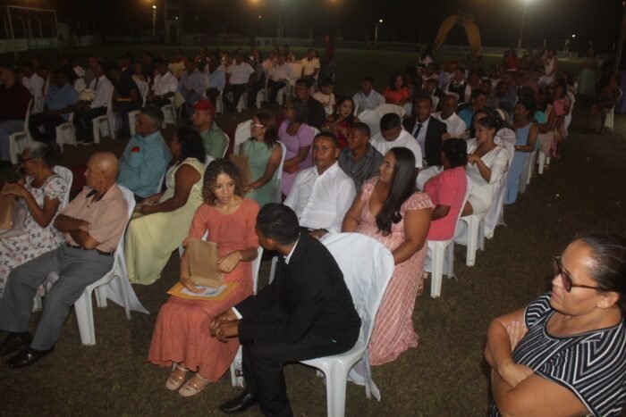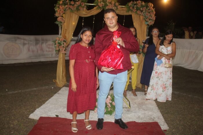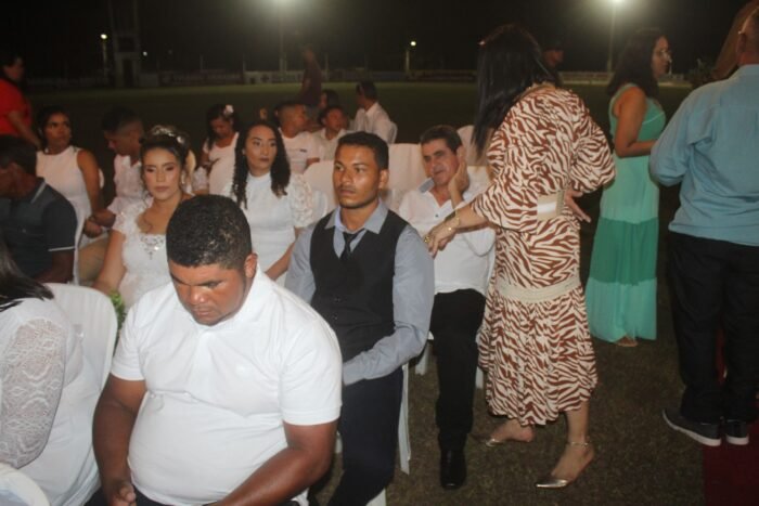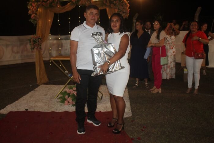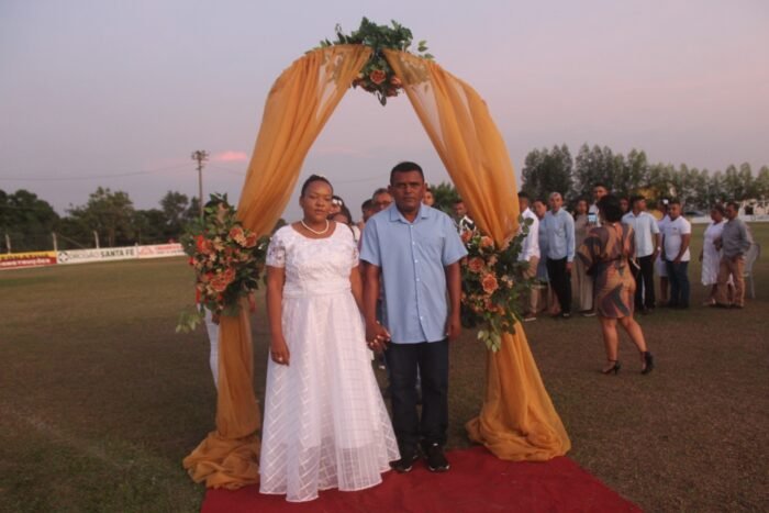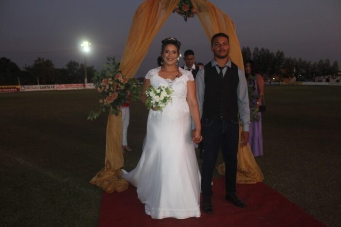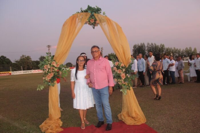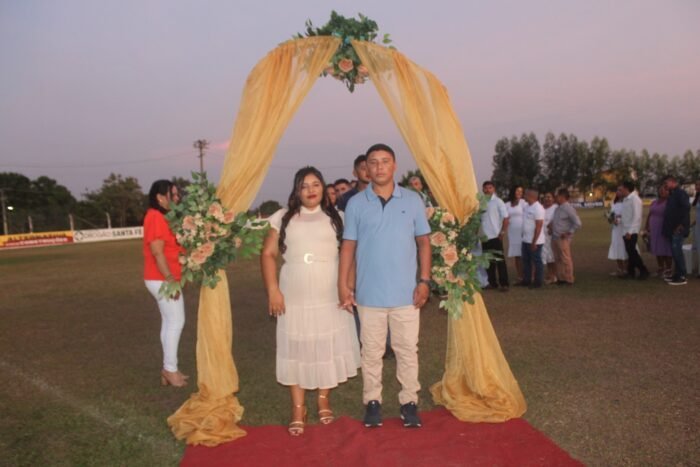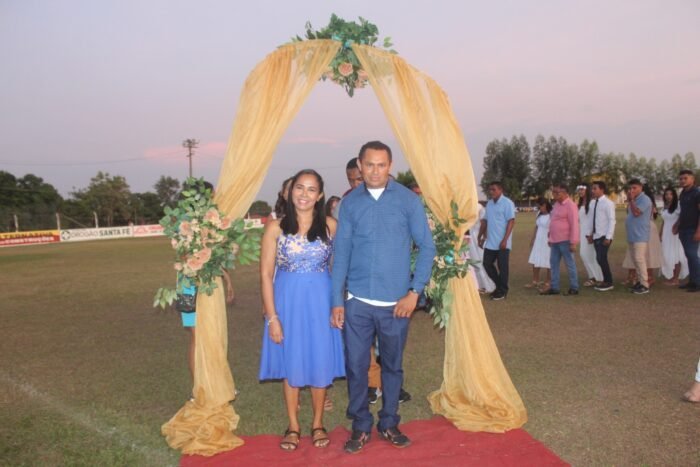 O Estádio Zezão, que geralmente é palco de partidas de futebol e eventos esportivos, foi transformado em um cenário de conto de fadas para os noivos que escolheram participar do casamento comunitário. A Prefeita Cristiane Varão e os vereadores Vania e Rony e secretarios municipais marcaram presença, demonstrando seu apoio à celebração do amor e da união na comunidade.