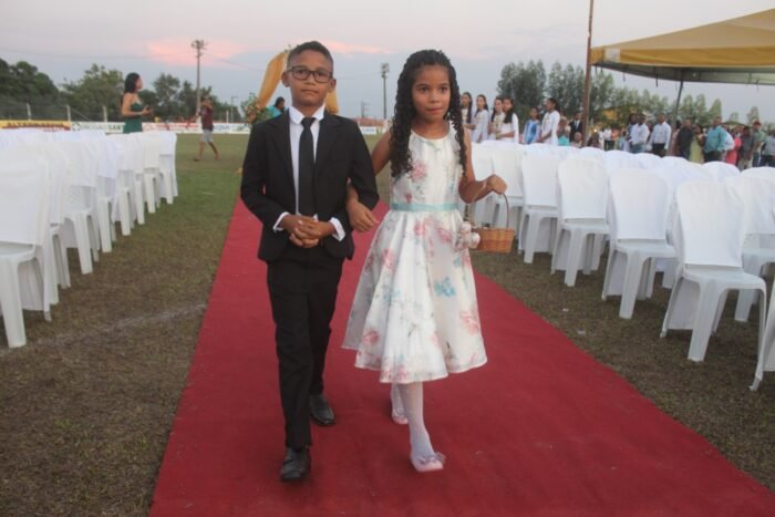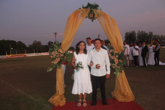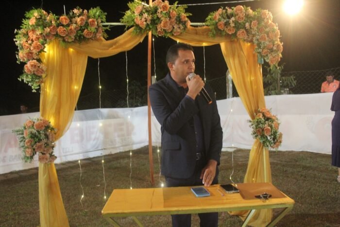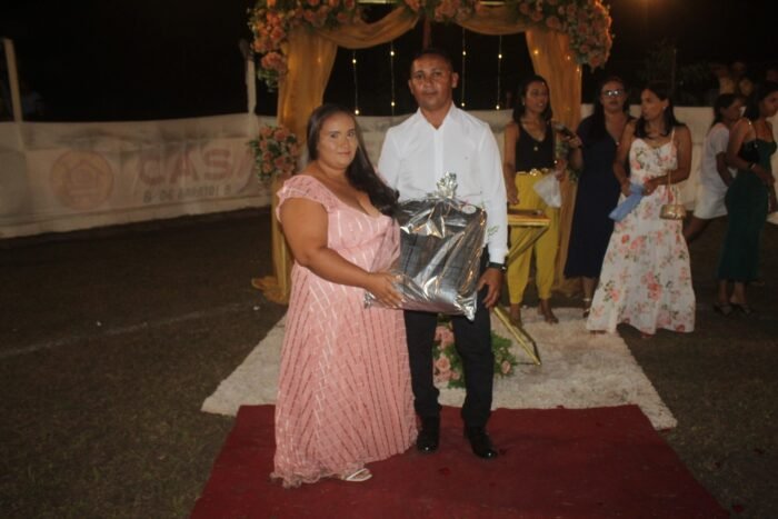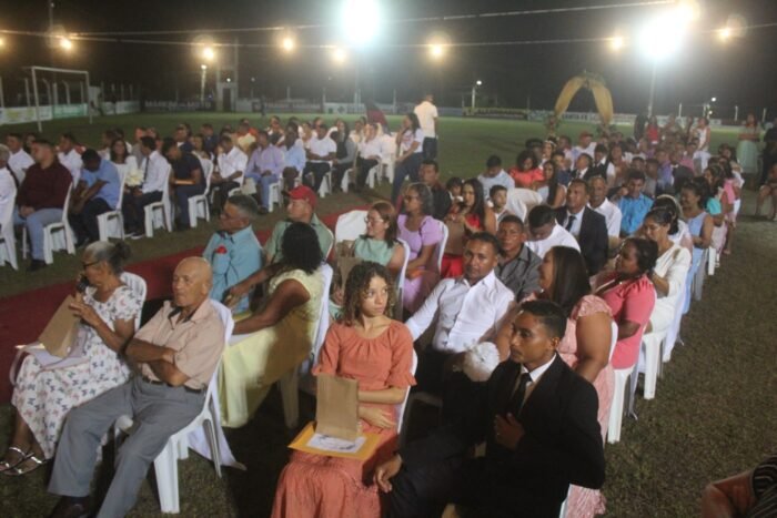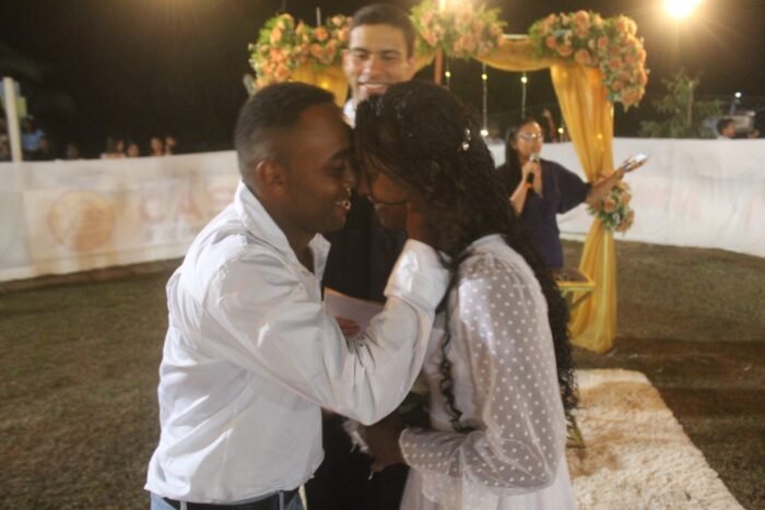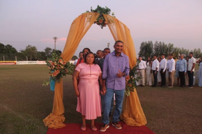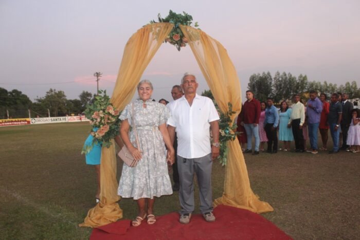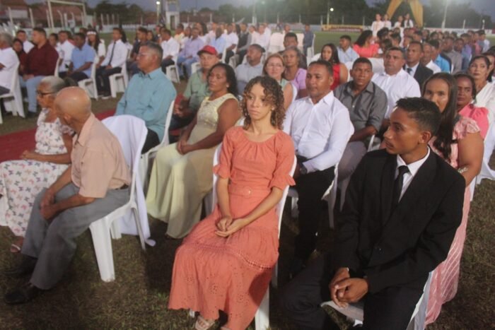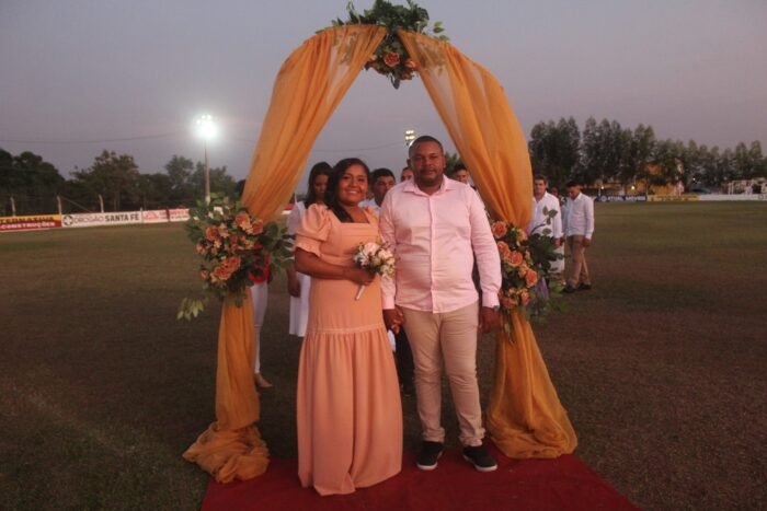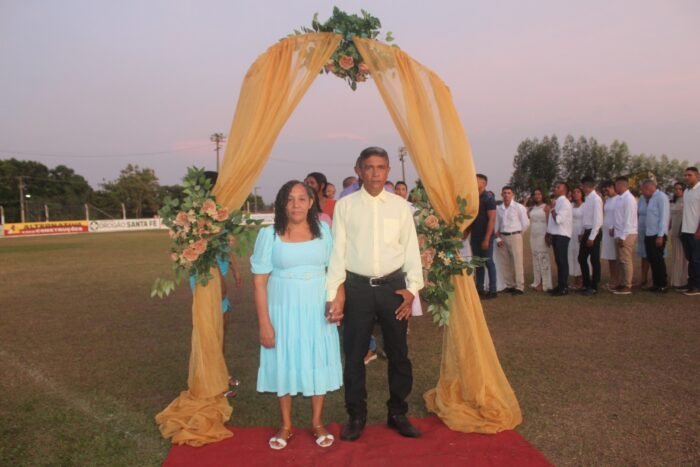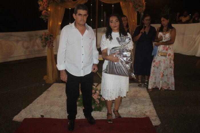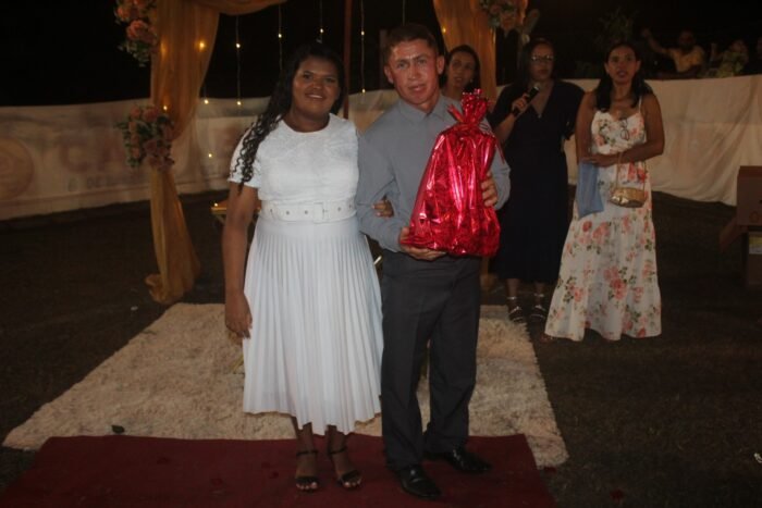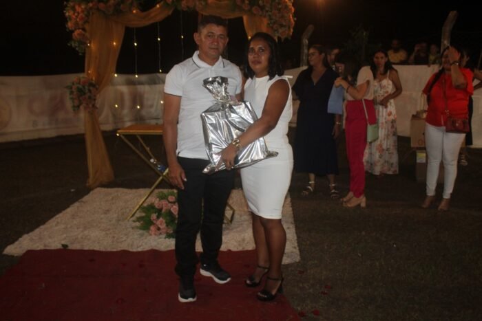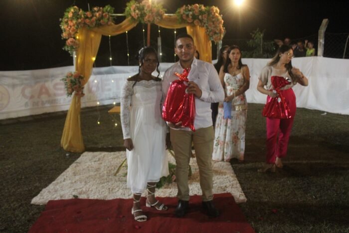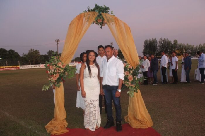 O Estádio Zezão, que geralmente é palco de partidas de futebol e eventos esportivos, foi transformado em um cenário de conto de fadas para os noivos que escolheram participar do casamento comunitário. A Prefeita Cristiane Varão e os vereadores Vania e Rony e secretarios municipais marcaram presença, demonstrando seu apoio à celebração do amor e da união na comunidade.