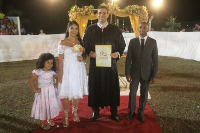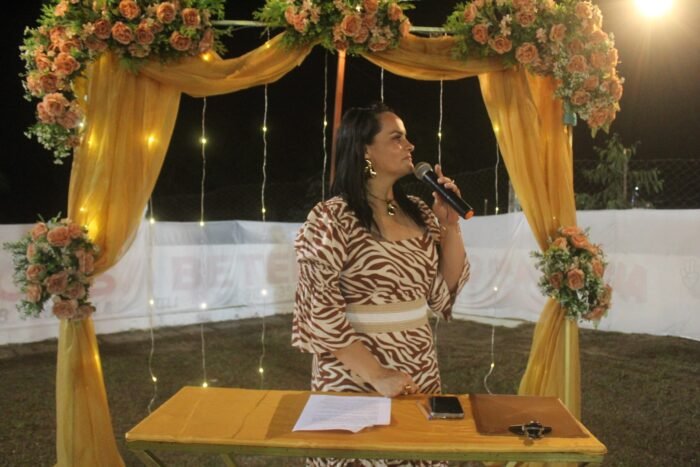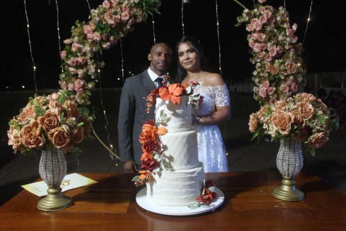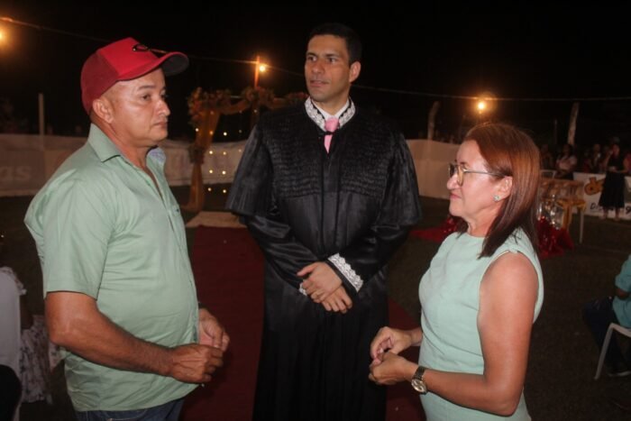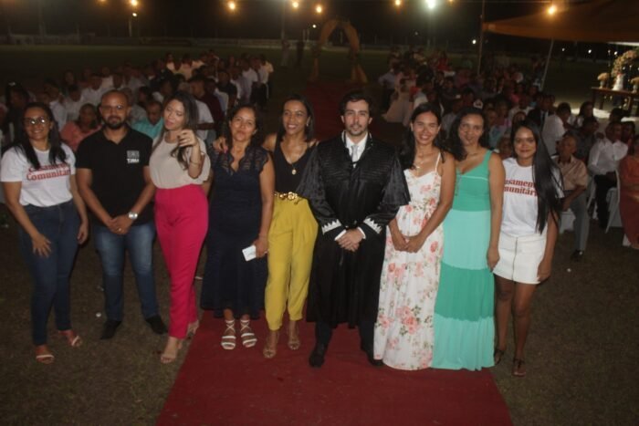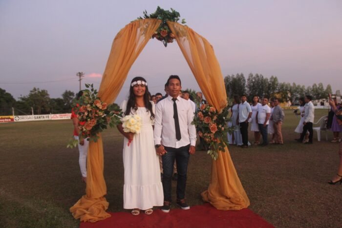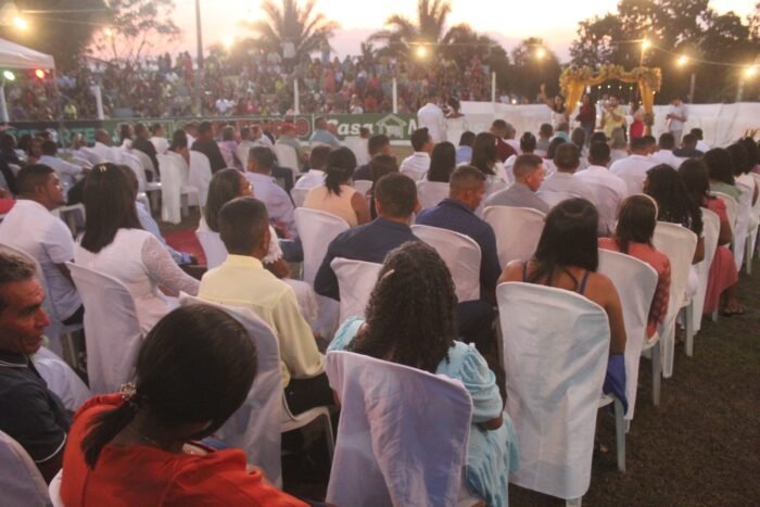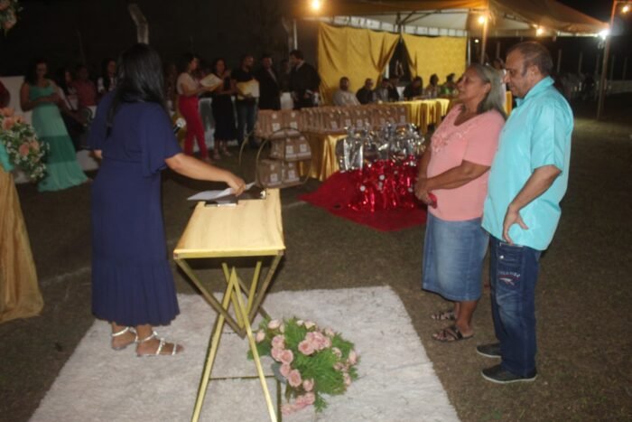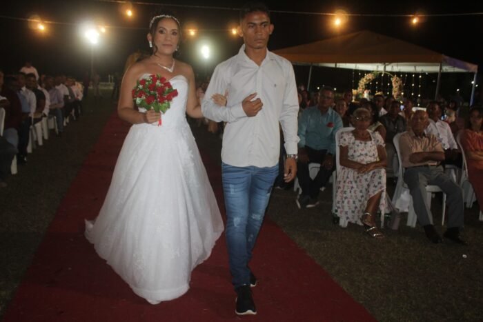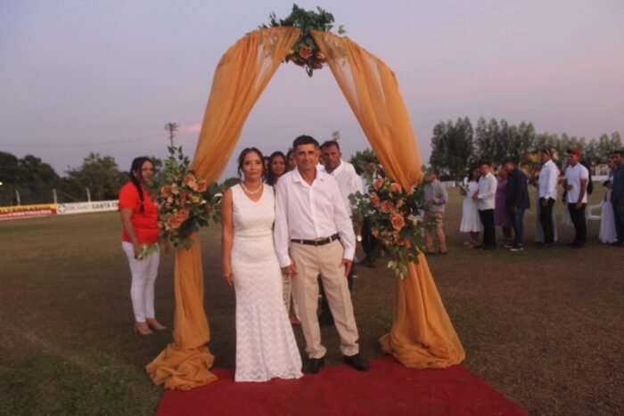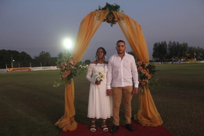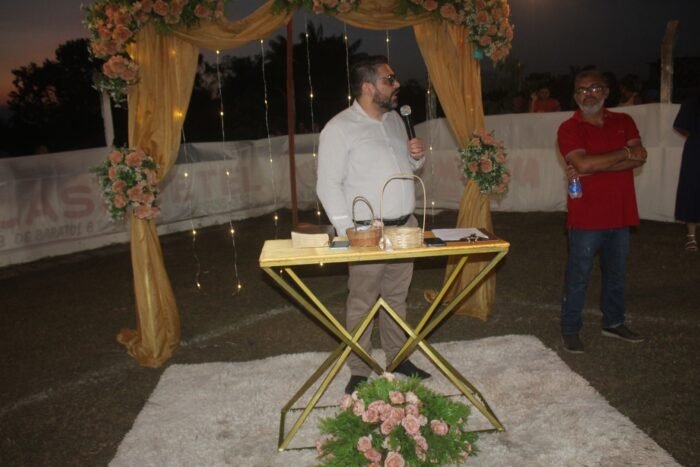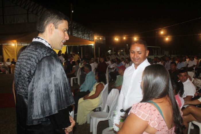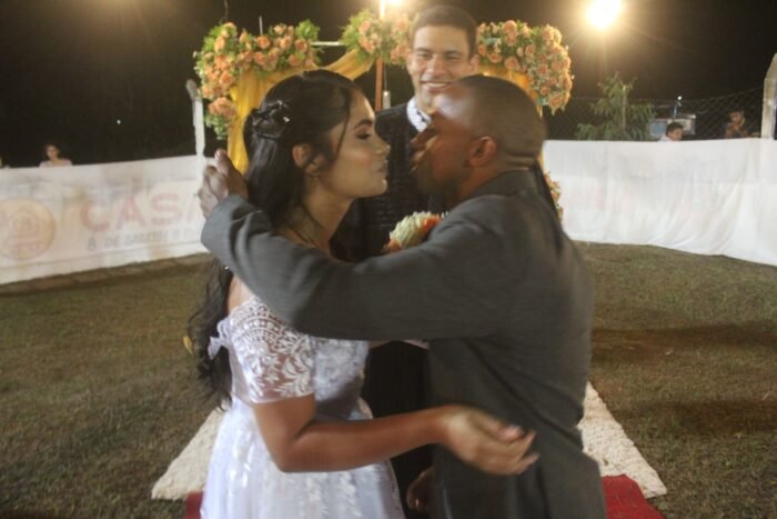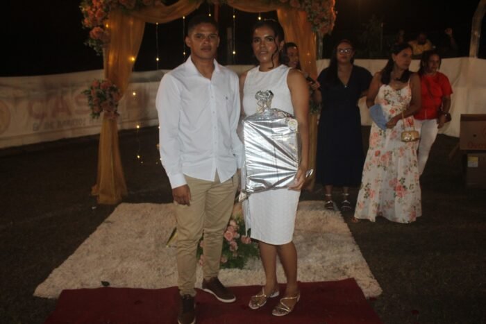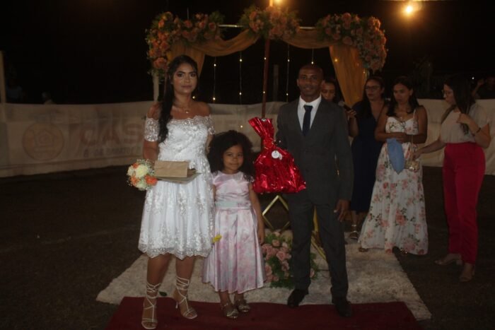 O Estádio Zezão, que geralmente é palco de partidas de futebol e eventos esportivos, foi transformado em um cenário de conto de fadas para os noivos que escolheram participar do casamento comunitário. A Prefeita Cristiane Varão e os vereadores Vania e Rony e secretarios municipais marcaram presença, demonstrando seu apoio à celebração do amor e da união na comunidade.