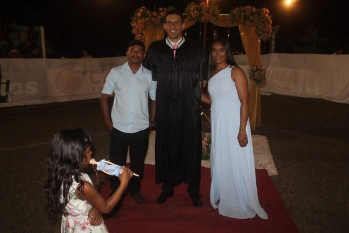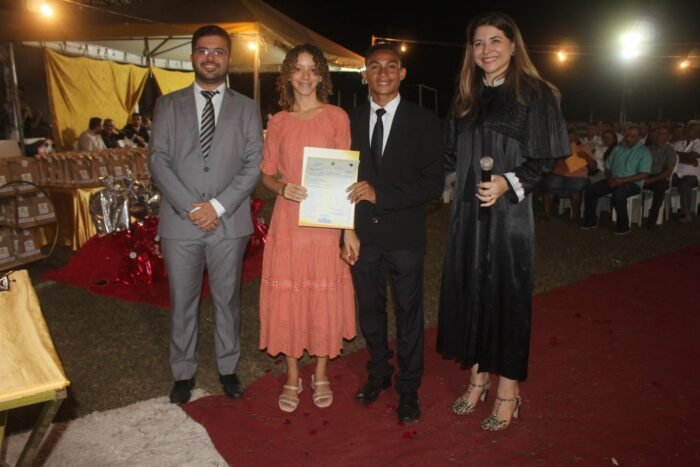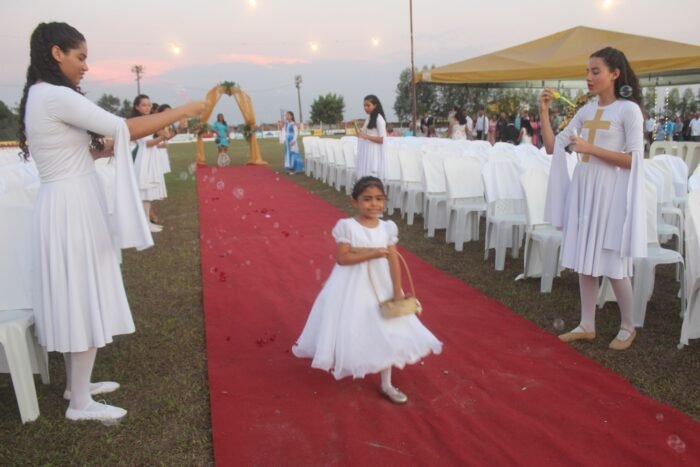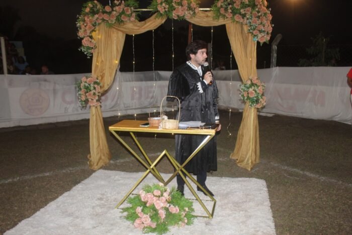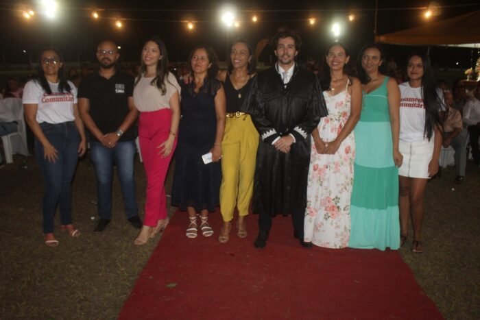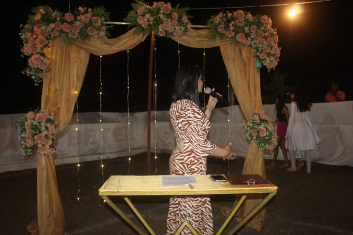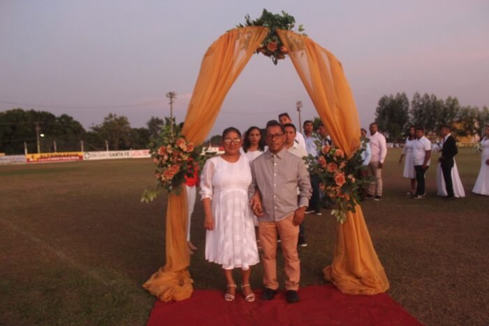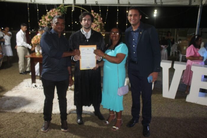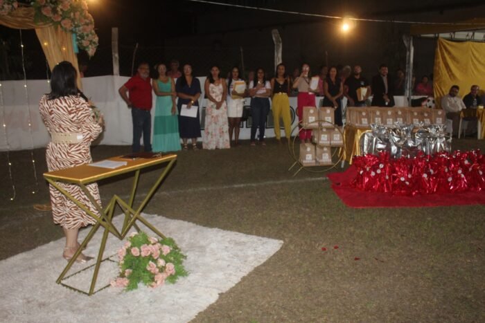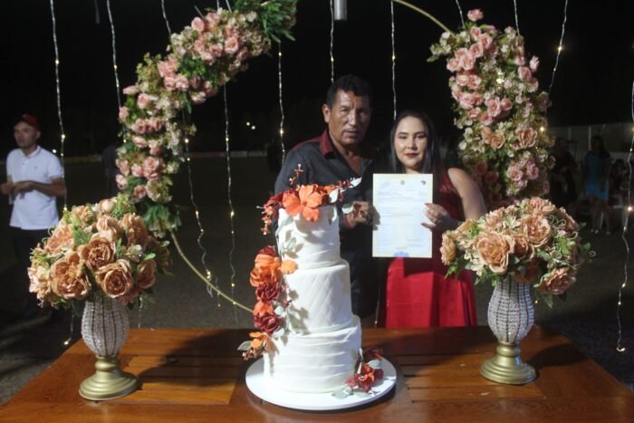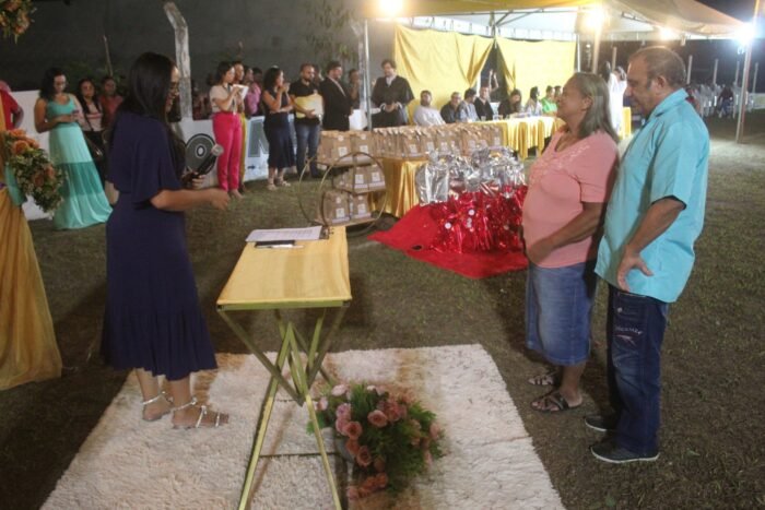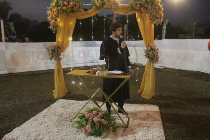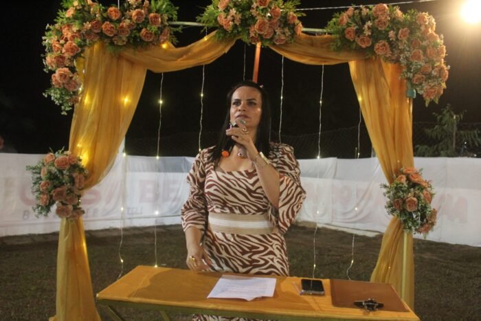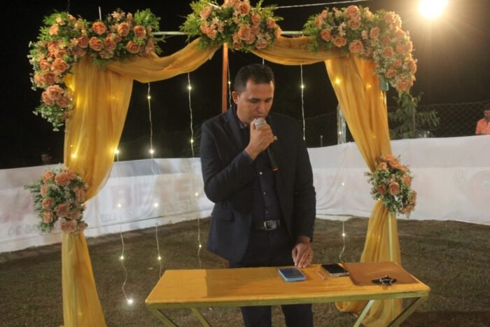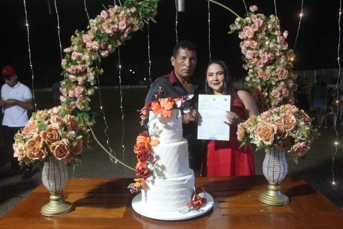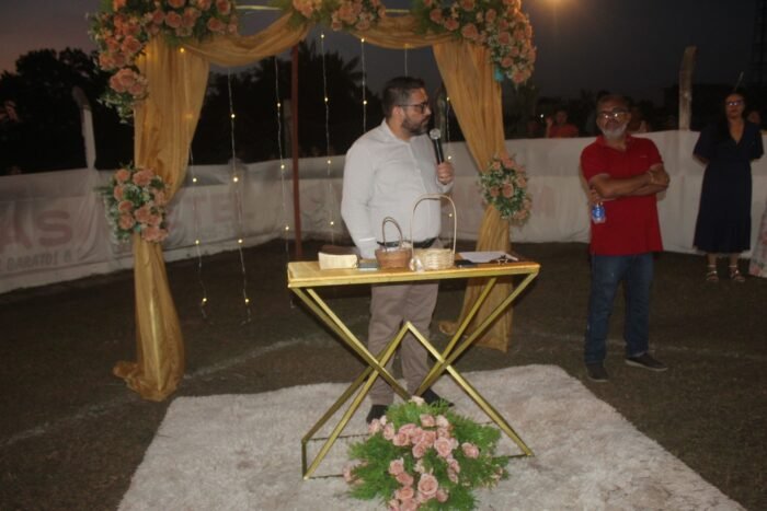 O Estádio Zezão, que geralmente é palco de partidas de futebol e eventos esportivos, foi transformado em um cenário de conto de fadas para os noivos que escolheram participar do casamento comunitário. A Prefeita Cristiane Varão e os vereadores Vania e Rony e secretarios municipais marcaram presença, demonstrando seu apoio à celebração do amor e da união na comunidade.
